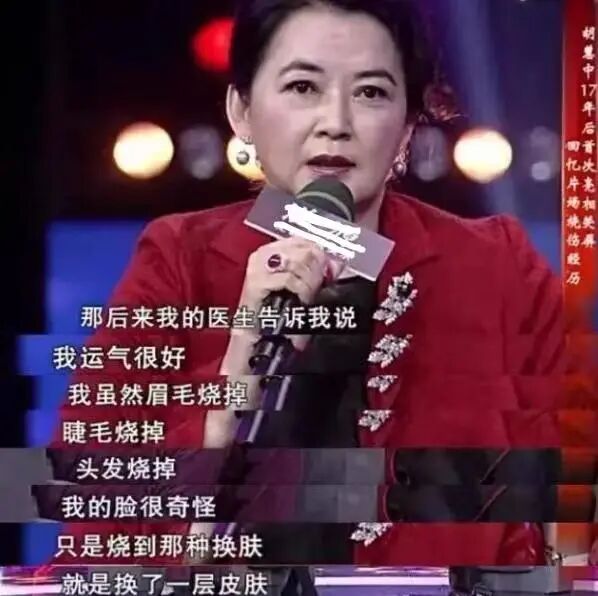 说到这里,胡慧中抬起右手,手背上还清晰可见烧伤后留下的伤痕。那是1989年,她在拍摄动作枪战电影《猎魔群英》时,因为烟火师计算错误导致爆点提前引爆而严重烧伤。