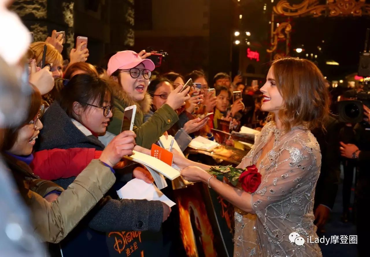 ▲艾玛还特别准备了5支玫瑰,送给“看对眼”的中国粉丝,这些幸运的朋友还可以首映哦~是不是后悔自己没去了!