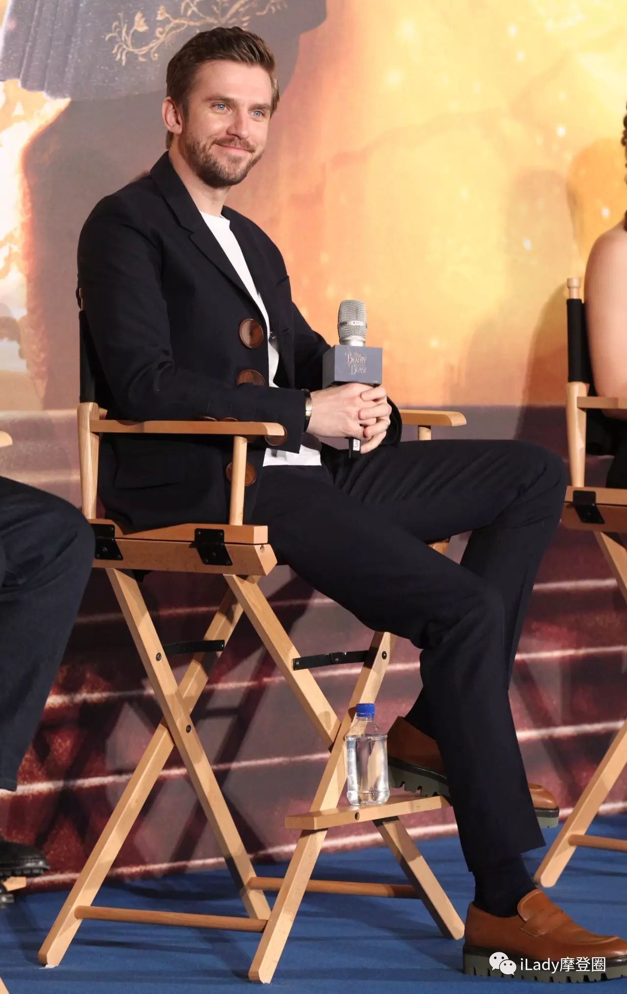 丹·史蒂文斯 Dan Stevens(饰演野兽Beast)身着蓝色西服出场,心情非常好,跟影迷合影都在做鬼脸!红毯途中还模仿了野兽的怒吼~