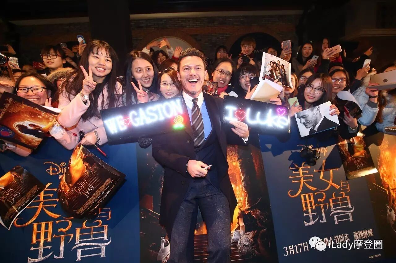 卢克·伊万斯 Luke Evans(饰演反派加斯顿)如果说跟剧中的坏蛋角色有那么一点相似的话,就是“万人迷”了,不停地听到“Luke、Luke”的尖叫声!