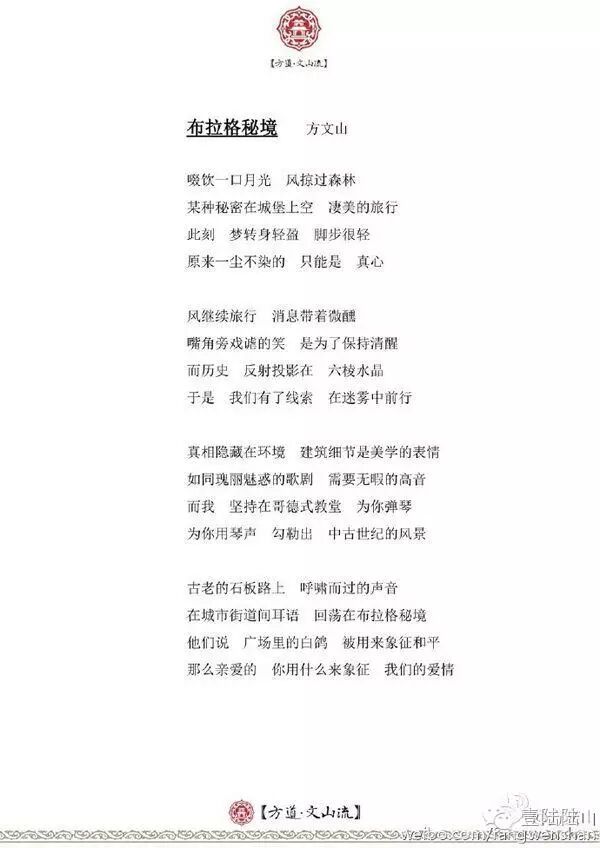 近日,知名作词人方文山“布拉格情结”重燃,继13年前的《布拉格广场》后,再次重写布拉格,动情为短片《布拉格秘境》发文,文字间尽展这座欧洲古城的神秘瑰丽,令人心驰神往。值得一提的是,方文山充满韵律的考究文辞,还让很多网友感慨地说道“写得这么好,周杰伦什么时候谱曲唱出来啊”。