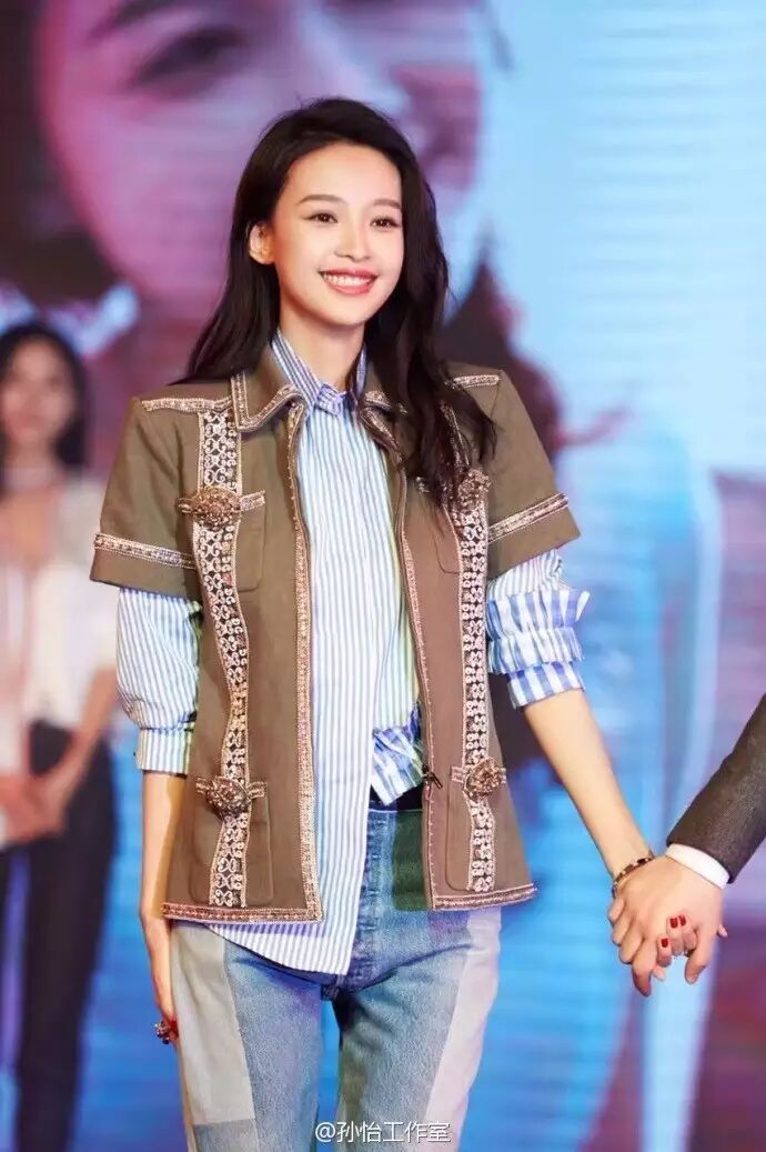 ▲出席《因为遇见你》开播发布会,小妮子身穿Chanel外套搭配Mother牛仔裤,脚踩Jimmy Choo粉色高跟鞋。整体造型干净利落。