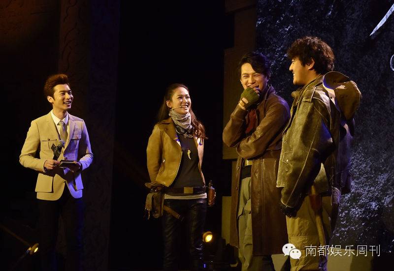 为了营造出“探秘寻宝”的气氛,主演们用“砸墙”的方式出场,“咣咣”地砸开“山壁”,破壁而出。