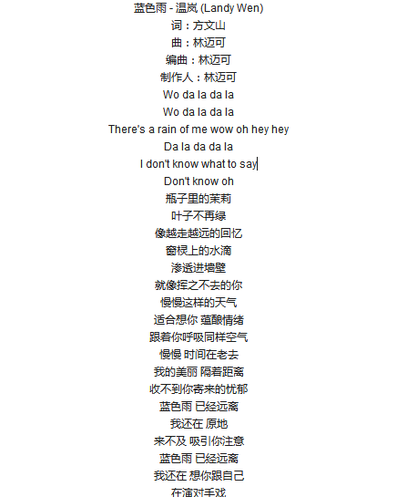 《蓝色雨》是温岚于2002年发行的第三张个人专辑,包含10首歌曲,也是该专辑的一首同名主打曲。