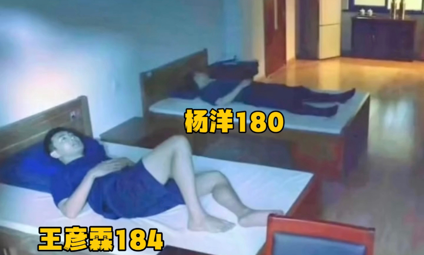 同样是睡在消防员宿舍床上躺着,隔壁的王彦霖腿都伸不开,杨洋平躺以后,脚底板距离床尾还有一段距离。