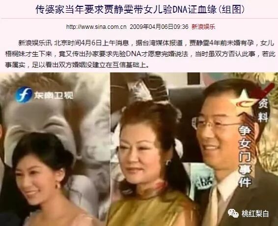 最早的新闻里,未婚生下梧桐妹后,婆家始终看不起艺人出身、北影肄业的贾静雯,还要验DNA。