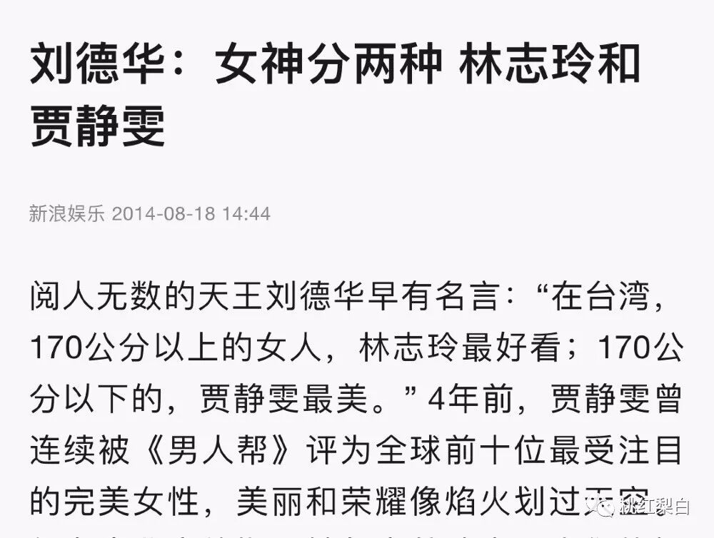 刘德华有句经典评价:台湾一米七以上的女明星,林志玲最好看;一米七以下的女明星,贾静雯最美。