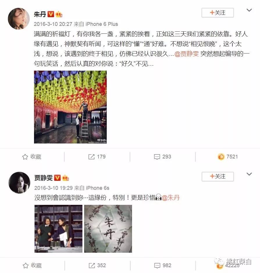 俩人交集的起点大概是2016年3月10号,她们同一天发布微博。