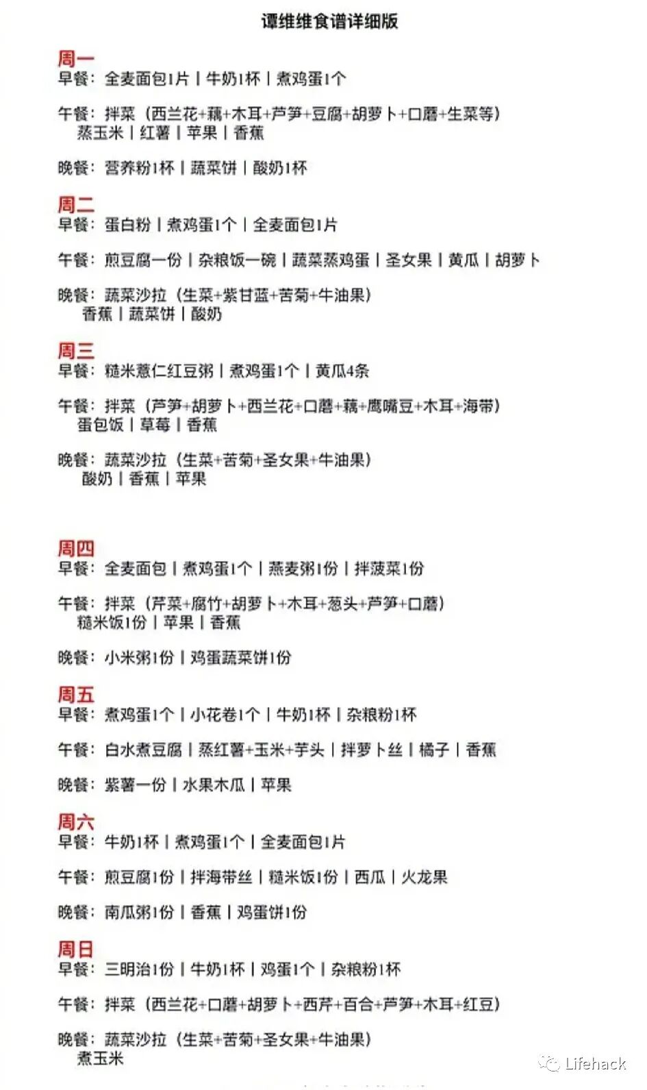 她还分享了自己独创的瘦身菜谱,大家可参考下: