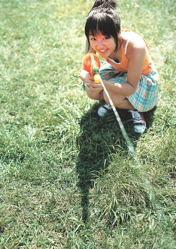 这是一本她十五岁时候拍摄的写真集。浴衣 、西瓜、 禅 、洒水枪、 冲浪板 、野球 、烤玉米、水手服,组成了一幅生动、活泼带着少女愁绪的青春画卷。笑的时候是最放肆的大笑,不笑的时候也是真实的哀伤。只有日系摄影独有的真实与瞬间的记录,将一切都展现的自然而然,毫无痕迹。