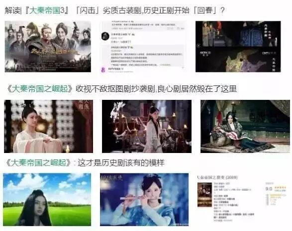 不少大号称历史正剧《崛起》的播出,绝对吊打现在号称“良心制作”的抠图剧、滤镜剧,以及打着历史正剧的幌子、实则依然是玛丽苏大女主填馅儿的古偶剧。而不少权威媒体也针对《崛起》热播引发的现象发声站队,例如《光明日报》、《人民日报》等,其中《光明日报》一篇文章《尊重历史才能赢得观众》,则是对《崛起》表示了支持的态度。文中提到,“在当下宫斗剧、仙侠剧、玄幻剧过度消费历史的市场氛围中,应当鼓励《大秦帝国之崛起》这类对历史有着深刻认识、对历史严谨负责的历史正剧。”