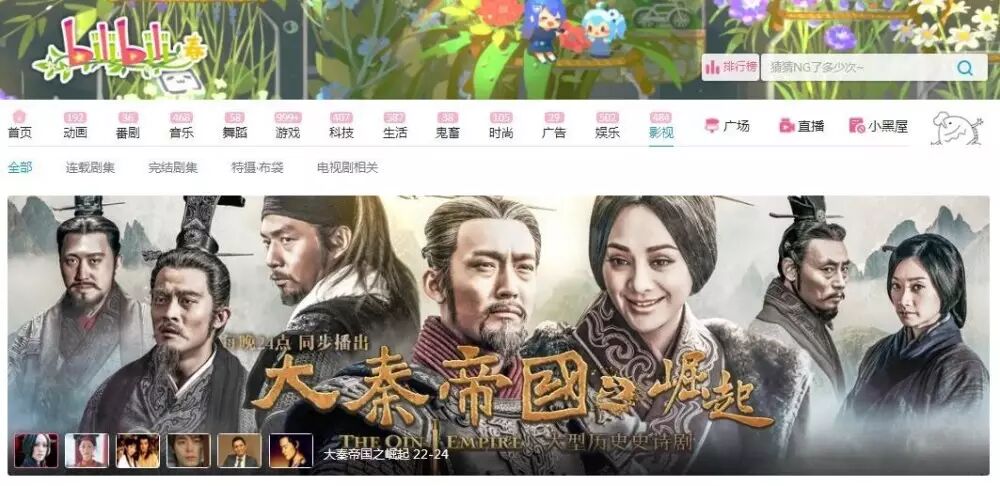 除此之外,B站的用户绝大多数都在20岁以下,虽然这些用户通常是鬼畜、二次元、宅基腐的代名词,但也正因为受众年龄层低,年轻用户很容易受到爱国情绪的感染,而《大秦帝国》整部系列剧的热血精神则恰好切合这一点,且其中《大秦帝国之裂变》、《大秦帝国之纵横》早就在B站走红,积累了一定的粉丝和知名度。因此第三部《大秦帝国之崛起》一经播出,就自然而然地引起了B站的主推,其热血&燃的精神内核极易引起年轻受众的共鸣。