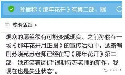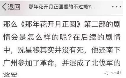 有网友称孙俪在之前的宣传活动中称那年花开第二部正在创作了,编剧苏晓苑老师已经开始写第二部了,据悉第二部的剧情是沈星移并没有死,这对于电视迷来说是很好的消息了,也很好的把第一部和第二部串联了起来。