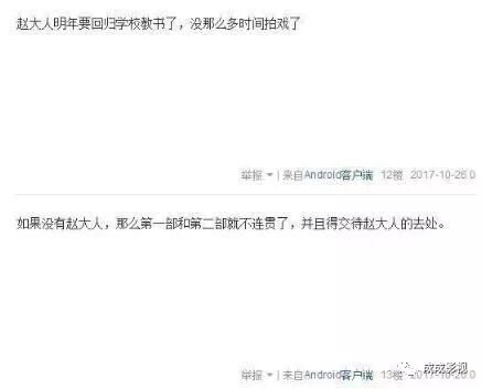 很多网友表达了自己的看法,看来都非常喜欢任重饰演的赵白石啊,“赵大人明年要回归学校教书了,没那么多时间拍戏了”,“没有赵大人,第一部和第二部就不连贯了”,“赵大人演的话必须男一,男二就没意思了,不如不演”等。