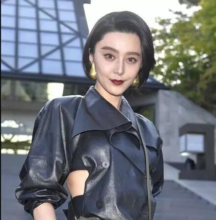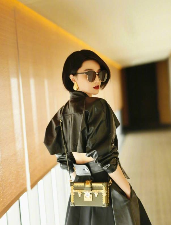 范小胖短发皮衣,不仅敢露腰,而且超显瘦