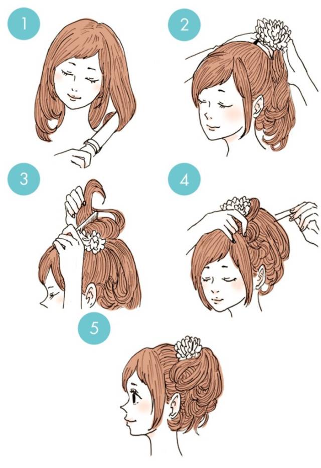 这款发型大家想必都不陌生,经常能在各大画报上看着女神们身着波希米亚长裙,扎着这样的发髻,举手投足间尽是优雅。上图这款手绘教程大家学起来,有时候变身女神其实很简单。