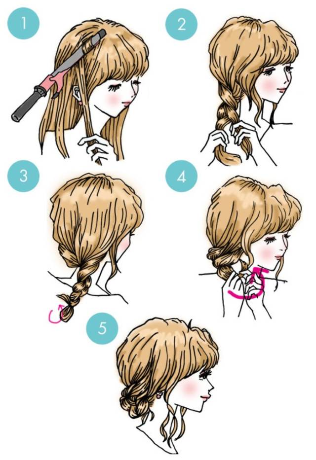 这款发型乍看起来比较复杂,其实操作起来非常简单。洗发后用吹风机吹蓬松,然后按照上图的手绘教程编发,就可以轻松打造出清新迷人的韩剧女主风。