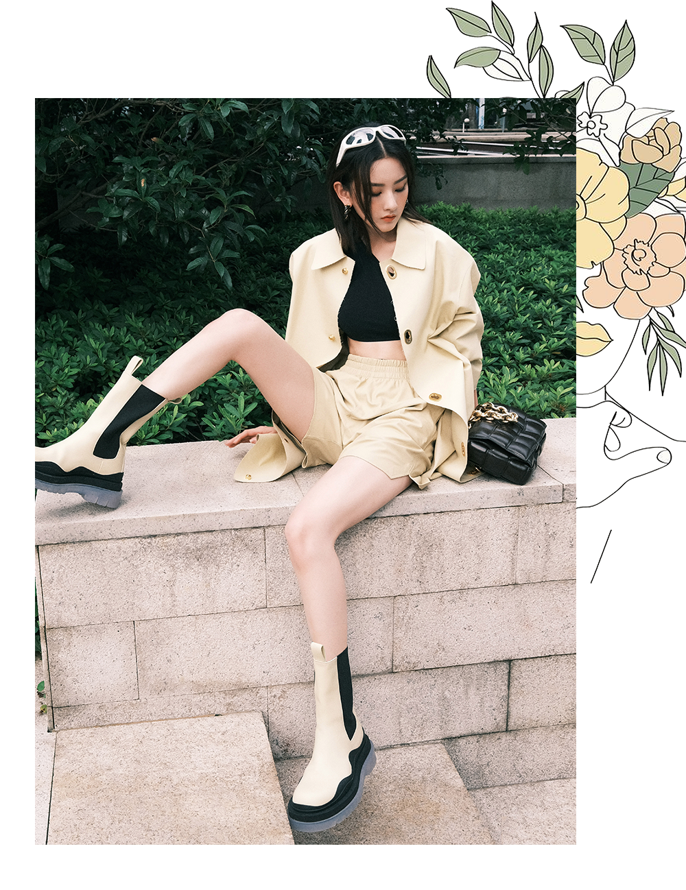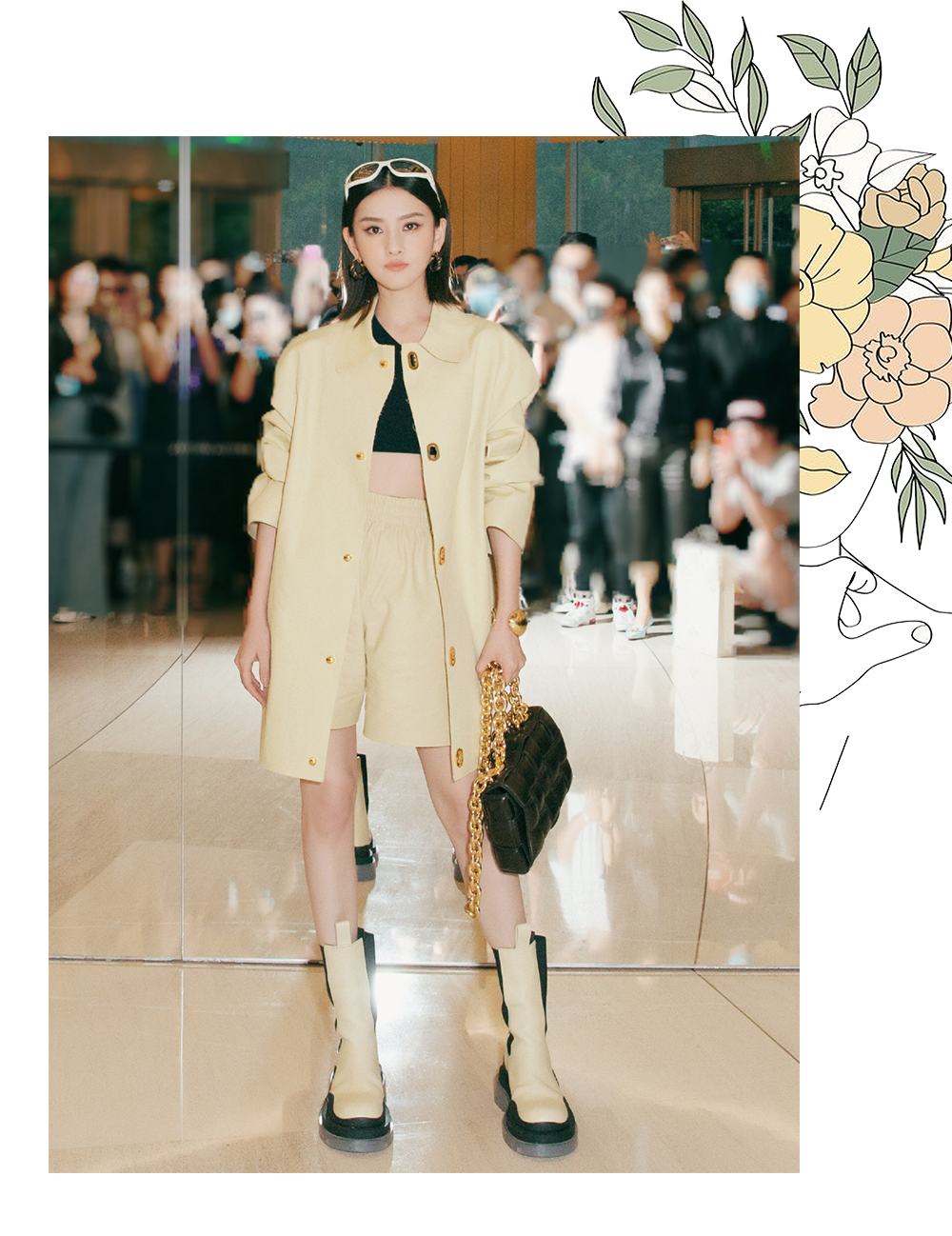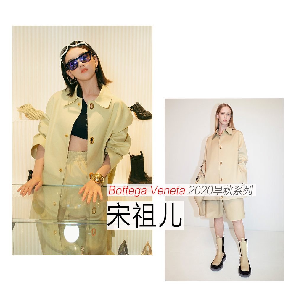 和宋妍霏一样的crop top穿搭法打破了BV的云淡风轻,依旧保留了精湛工艺剪裁出的现代美学,在墨镜的作用下拥有了先锋的酷。