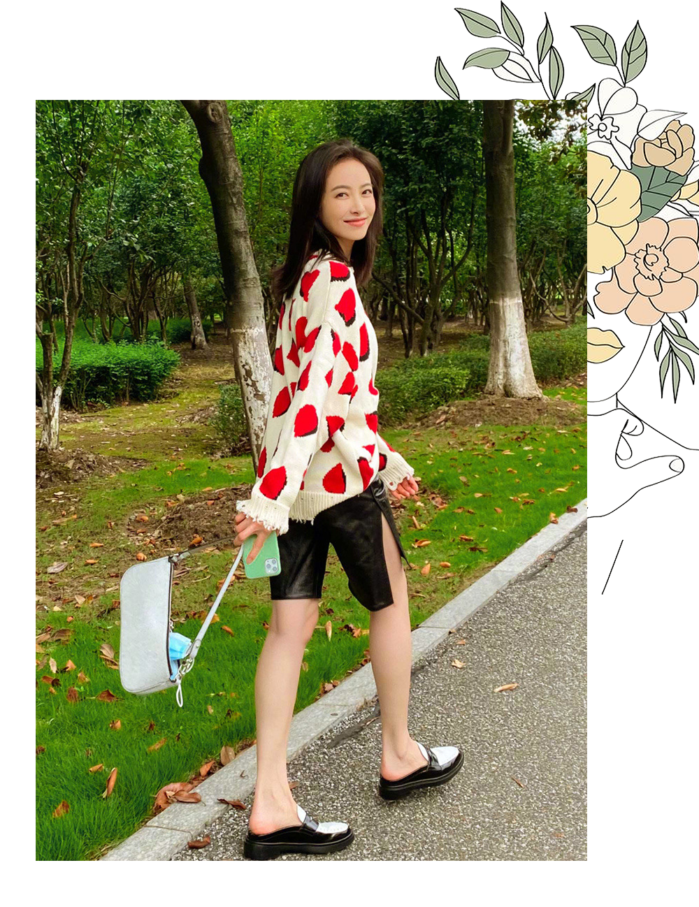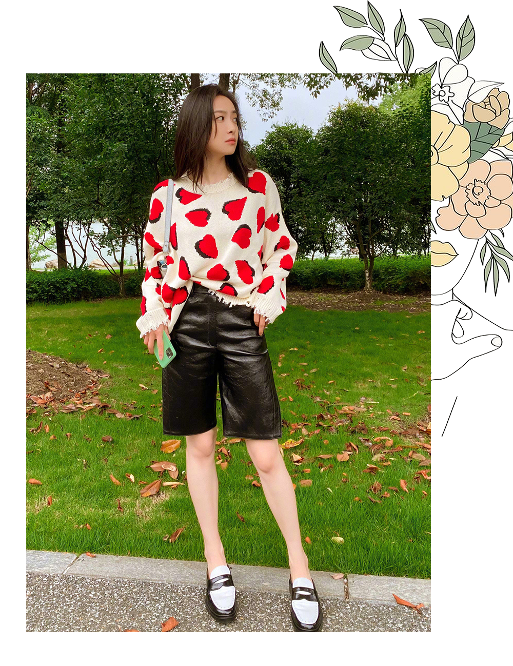 叛逆的R13叛逆把爱心做得像豹纹,Grunge风毛须边有一种破败的感觉,不过这一切在宋茜这里变得很“乖巧”,反倒多了一些复古的童趣感,反叛中又很讨喜。