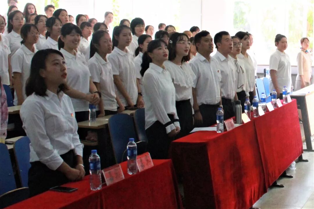 而后,在教育学院社团联合会未来教师协会会长陈静的带领下,2019级新生们进行了未来教师宣誓。他们庄严宣誓:“我志愿从事教师工作,忠于人民教育事业,贯彻国家教育方针,履行教师神圣职业,文明日常教师行为。坚定理想,忠于事业;严谨治学,甘于奉献;与时俱进,开拓创新。铸师魂,修师德;树师表,厚师风。为教育发展,国家繁荣和民族振兴努力奋斗!”