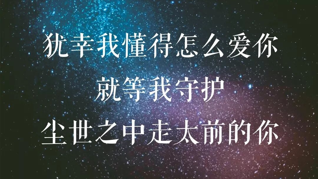 我会陪你去任何地方.有时候我觉得你是个来自未来的预言家.所以大家才觉得你是个异类.但为何你的善意美好却会令人退避.其实你心中有些想法我也没弄清楚.但幸好我明白怎去好好爱你.即使明日没有你想象般的美好.你也不会放弃.继续思考.既然你如此坚定.那么就请你好好做你的哲学家.我就负责守护在尘世中走得太快.走得太前的你.