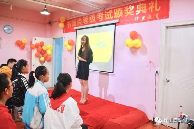 颁奖典礼开始前,主持人方老师为大家介绍仟里教育。仟里教育一直以尊重孩子们的个性发展,开发学生各方面才能,促进学生全面发展,力争做一所让家长放心的学校为办学理念,已得到学生和家长们的充分认可。