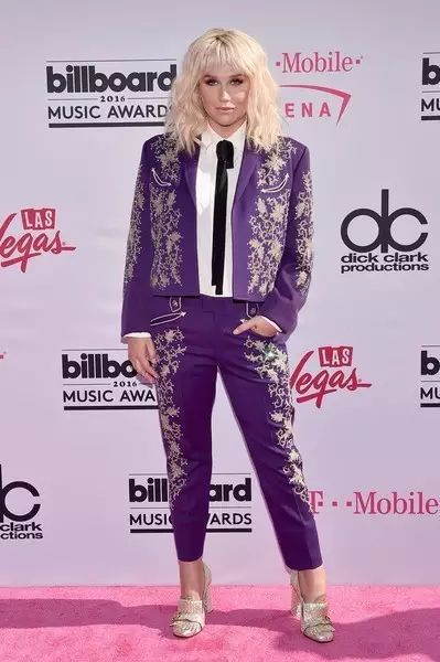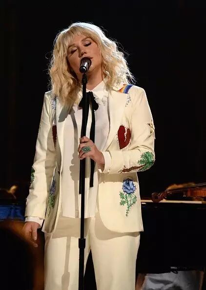 这次Kesha也是选择了穿古着,她的红毯装和表演服均来自nudie的古着套装。