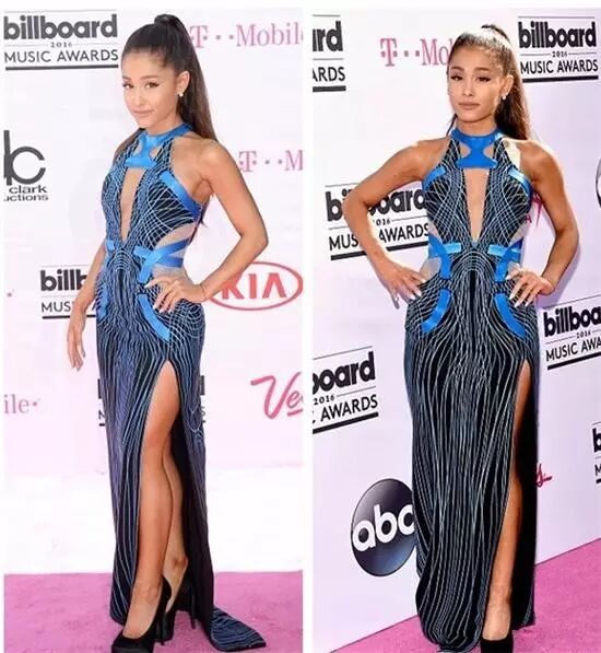 Ariana Grande刚刚才发行了自己的新专辑,穿着Versace的礼服败笔就是脚上厚重的防水台。
