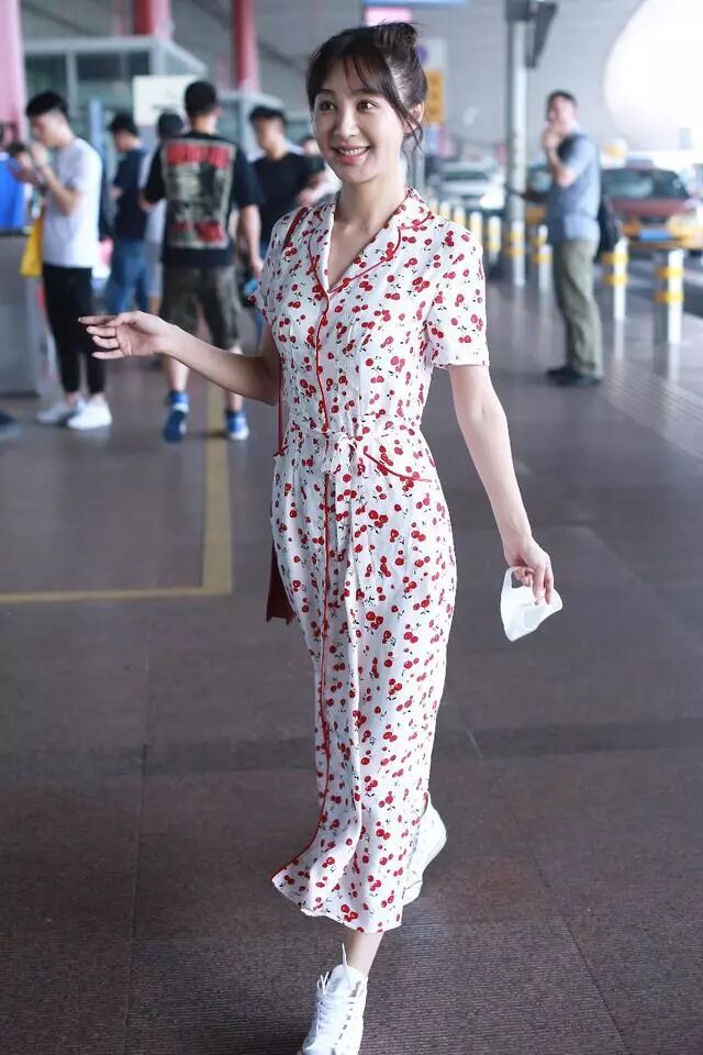 搭配一双纯白色的帆布鞋,这样子的李菲儿看起来还是挺粉嫩的,再扎起丸子头很可爱!不过好多小伙伴都是李菲儿是赶时间吧,裙子像睡裙不说,妆好像也没有化,没精神还有点显老呢!
