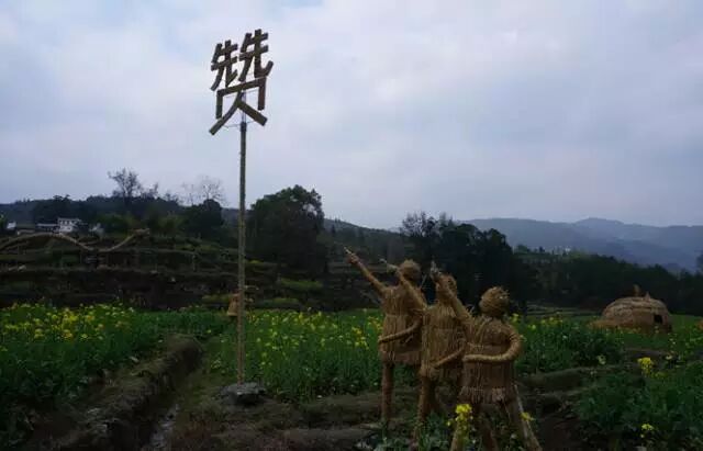 江岭浪漫的油菜花海中有农人制作的憨态可掬、生动逗趣的 “稻草人“,什么蓝瘦香菇,什么熊大熊二 ,什么傩娃探花,意想不到,妙趣横生... ... ,让田园充满互动,充满乐趣。
