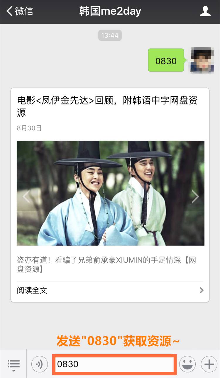 发送“0830”给米兔,可以获取电影网盘资源哦~(如下图)