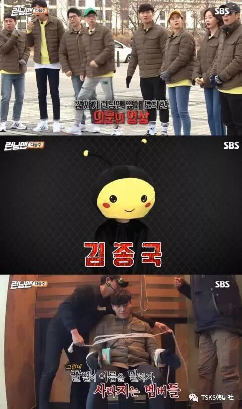 SBS热门综艺节目《Running Man》释出了3月3日的最新预告,主题是「蜜蜂的逆袭」,八位成员聚集在广场上,大屏幕上忽然出现了一只大蜜蜂说:「我是审判你们的蜜蜂!」