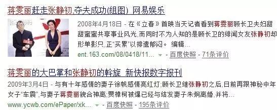 真是情敌相见分外眼红,最终蒋雯丽夺夫成功。而张静初当“小三”的传闻也在顾长卫与神秘女车震、蒋雯丽被传姐弟恋等新闻后慢慢冷却。