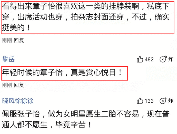 章子怡早期杂志封面曝光以后,有多位网友在评论区留言,评价了章子怡的这一组早期杂志封面,有一位网友在评论区留言,“看得出来章子怡很喜欢穿这一类的挂脖装啊,私底下穿,出席活动穿,拍杂志封面还穿,不过,确实挺美的”,还有一位网友照片评论区留言,“年轻时候的章子怡,真是赏心悦目”。