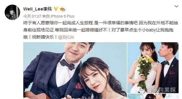 刘心结婚,同届快男只是在微博中送上了祝福,李炜说明自己再外地不能抽身……