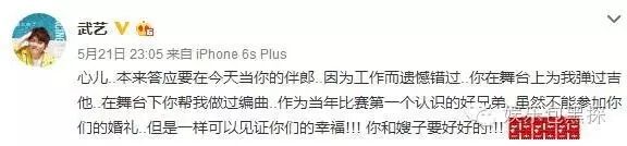 武艺说因为工作,在微博中武艺特别说明是曾今答应过刘心当伴郎