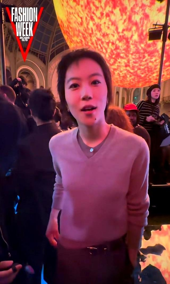 有人在现场拍视频,窦靖童边看秀边点评:“这几套衣服好看!”