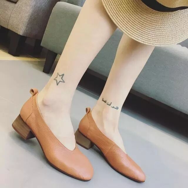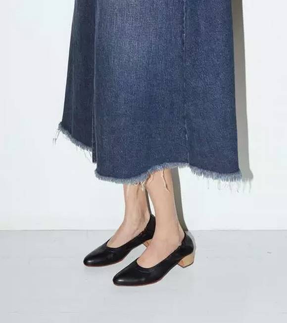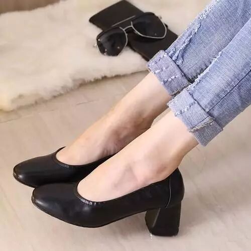 今年很火的小方根,而且是平底的,穿在脚上炒鸡舒服的。再搭配上你的小脚裤,谁说不时髦呢!