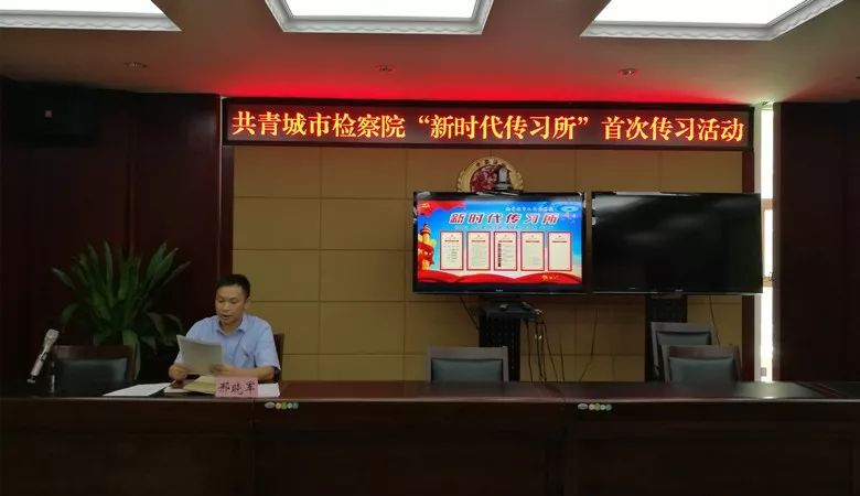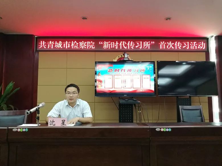 8月13日,共青城市检察院举行“新时代传习所”首次传习活动。受党组书记、检察长林丹云委托,党组成员、副检察长邢晓军主持,党组成员、副检察长兼传习所副所长沈星作为首席传习员为全院干警作了理论和政策传习。