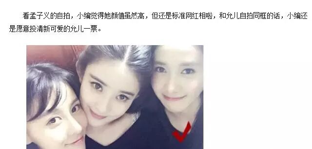 还号称颜值碾压林允儿,说实在的,虽然我觉得中国不少小花可以碾压林允儿,但是孟子义这个。。。平心而论,并不能。(还好有跟我一样想的其他新媒体小编)