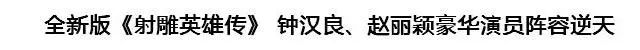 之前传说由钟汉良和赵丽颖主演的新《射雕英雄传》3月底开机,目前正在横店热拍。这一版由华策、完美影视出品,蒋家骏导演,郭靖宇监制。