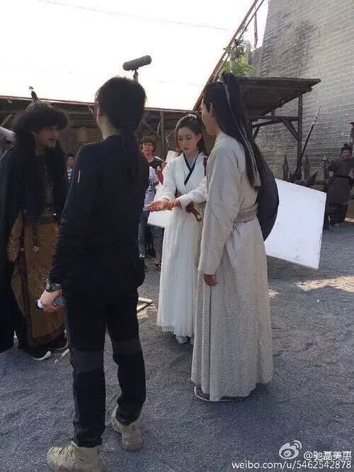 路透出来的片场图,红衣的就是穆念慈(孟子义),这个场景似乎是比武招亲,白衣的按照角色来说,是杨康?