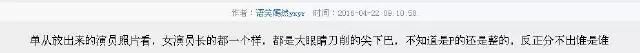 还有这位网友简直一语中的:单从放出来的演员照片看,女演员长的都一个样,都是大眼睛刀削的尖下巴,不知道是P的还是整的,反正分不出谁是谁...