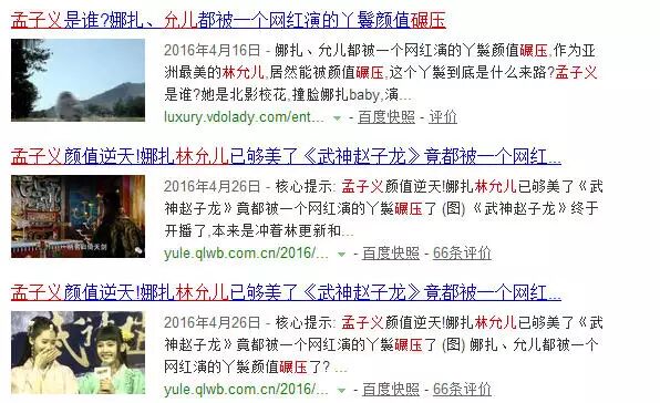 其实演员表里边,最让人醉了的是演穆念慈的孟子义,1995年12月5日出生于吉林长春,浙江永乐影视制作有限公司旗下。曾经演过《武神赵子龙》林允儿身边的丫环,一搜新闻,关键词全是“网红”。