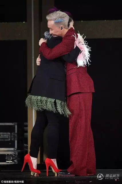 合唱后,郑中基与杨千嬅握手拥抱,这也是二人分手18年后再次公开亲密互动。