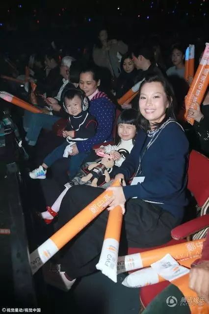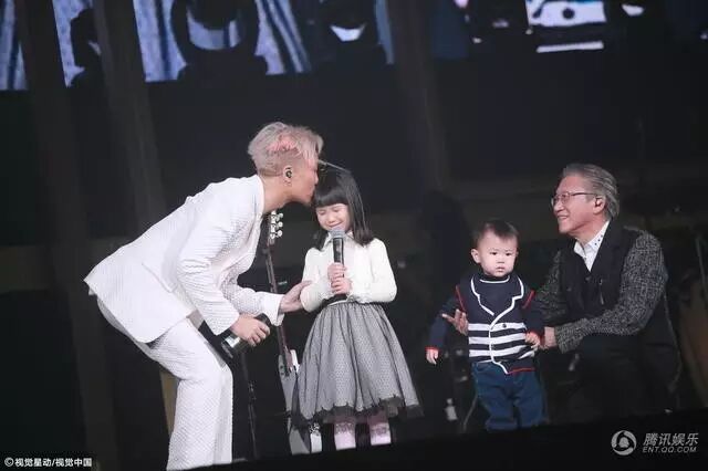 郑中基的爸爸郑汉东也带着孙子孙女一起上台,为儿子捧场。