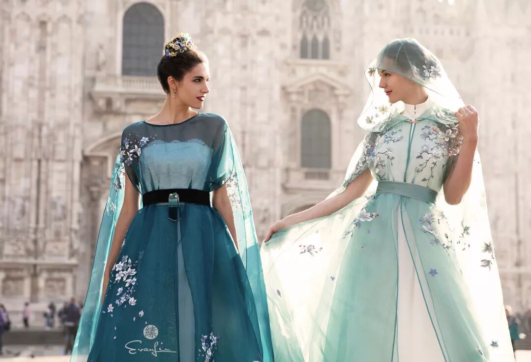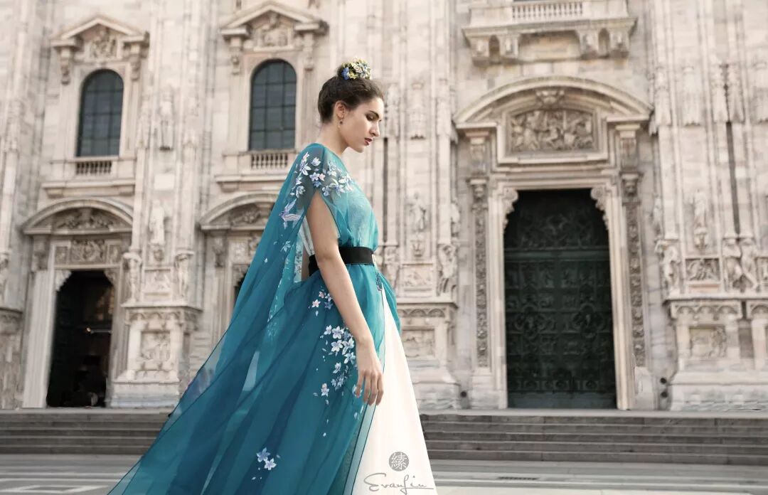 縤EVAN LIU《云开》2019春夏系列专场发布会上展示了诸多中国文化的服装,其中就有这件蓝色礼服。