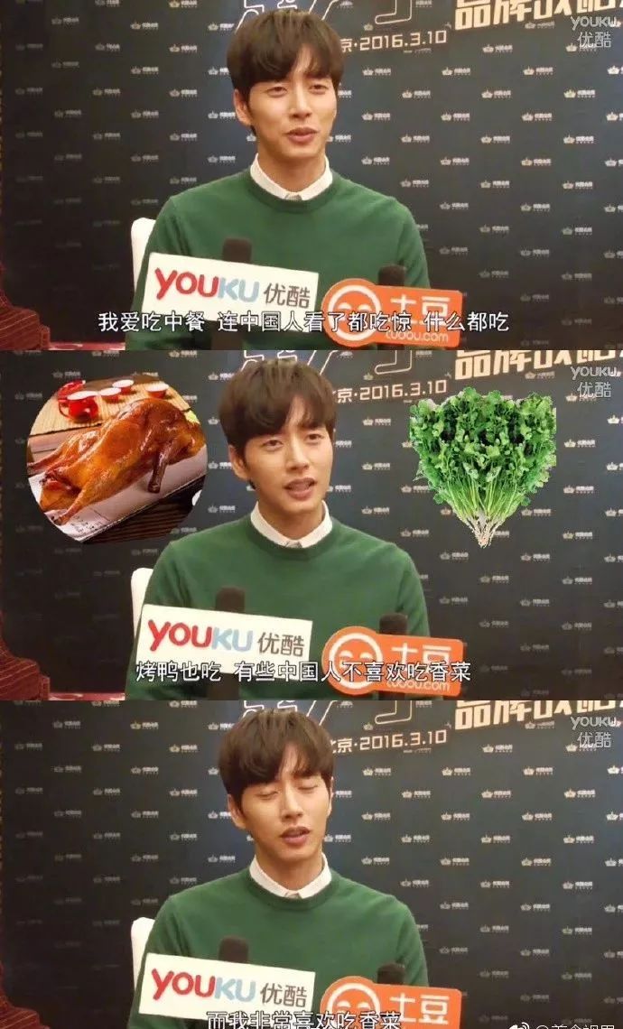 朴海镇曾在采访中透露过虽然很多人讨厌香菜,但是自己就特别喜欢吃香菜