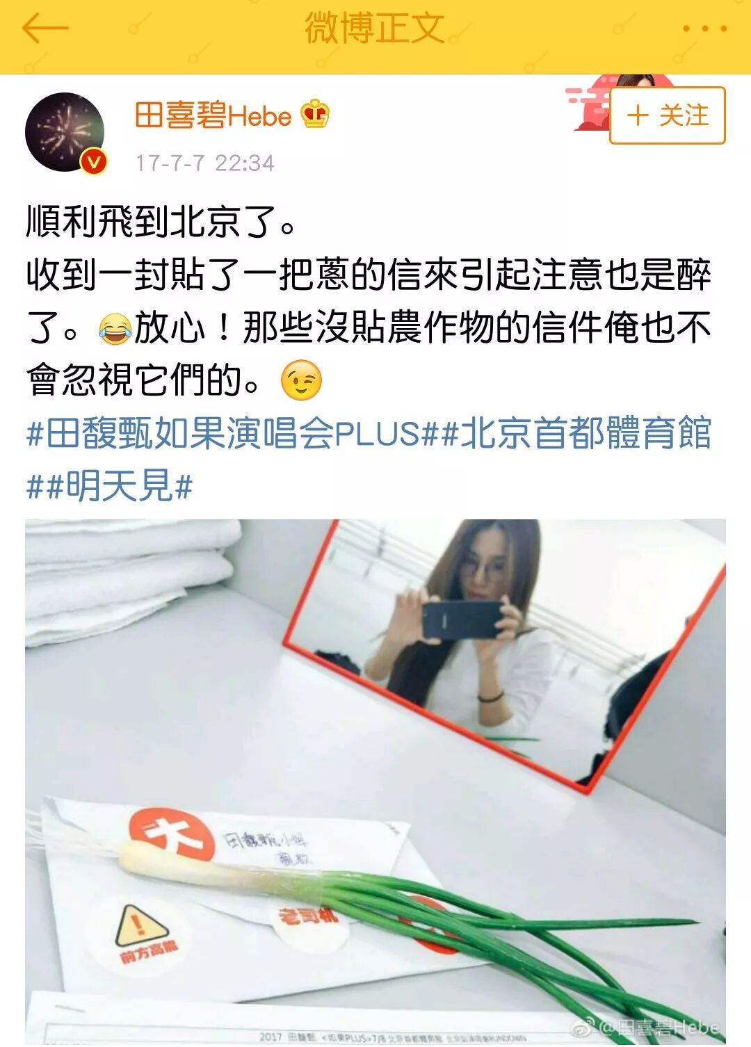 另外,Hebe居然也收到过粉丝送的葱,这些送菜的粉丝们脑洞也太大了。