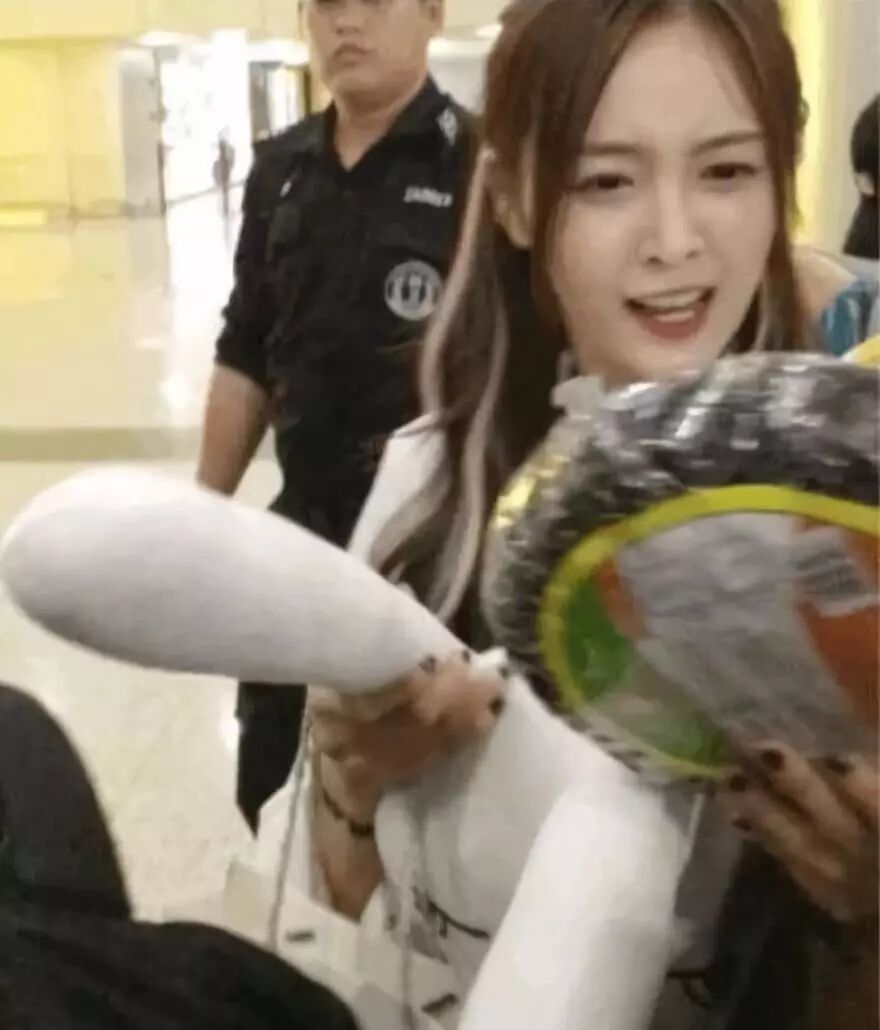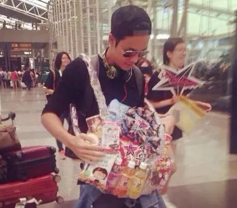 结果就有人在她的机场照中发现手拿一包粉丝送的辣条。
